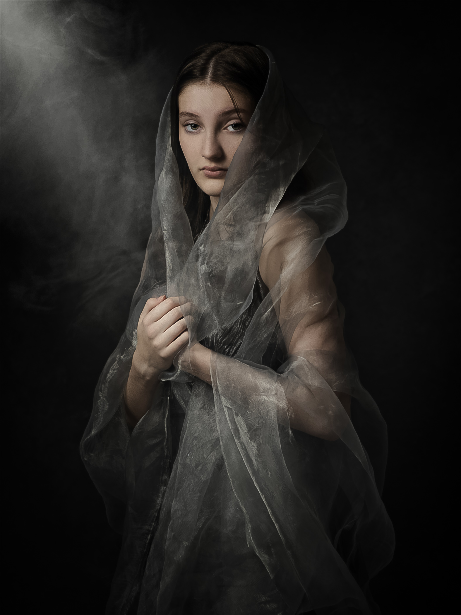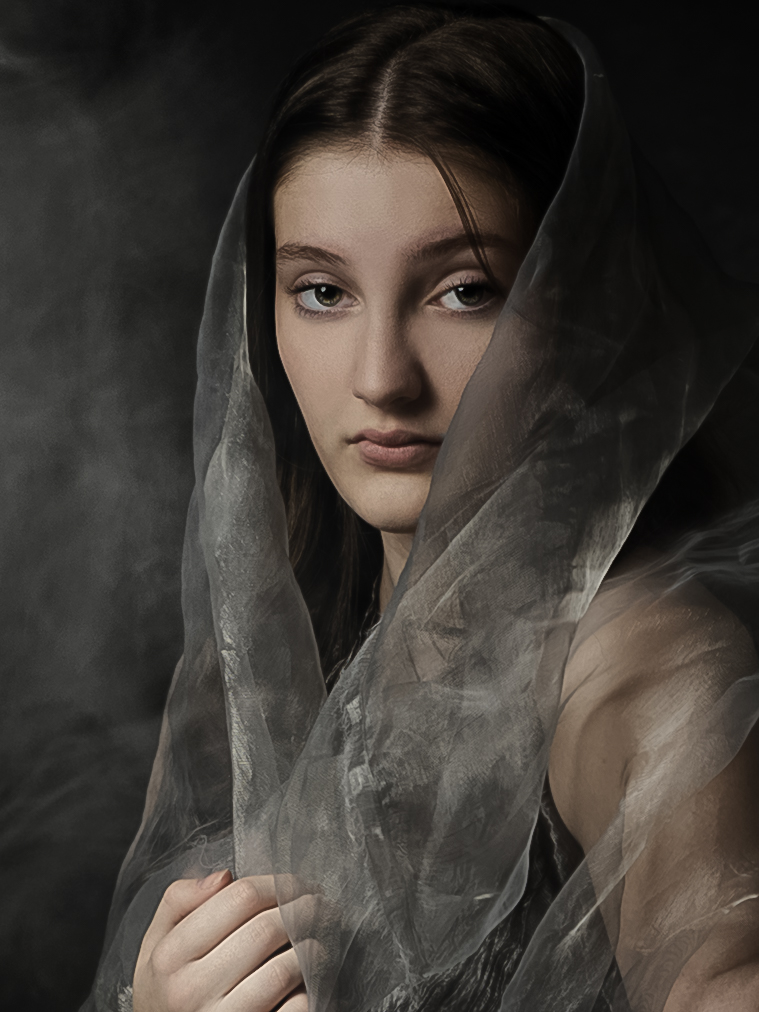 Het mooie model Jennifer poseert in een workshop van Kaat Stieber.